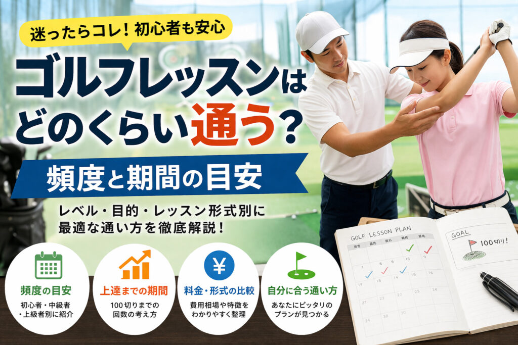 ※本記事はアフィリエイトプログラムを利用しています。 ゴルフレッスンはどのくらい通うのが正解なのか、かなり迷いますよね。初心者なら週に何回がいいのか、100切りまでどれくらい続ければいいのか、ゴルフレッスンの効果が出る期間や料金相場まで気にな... -