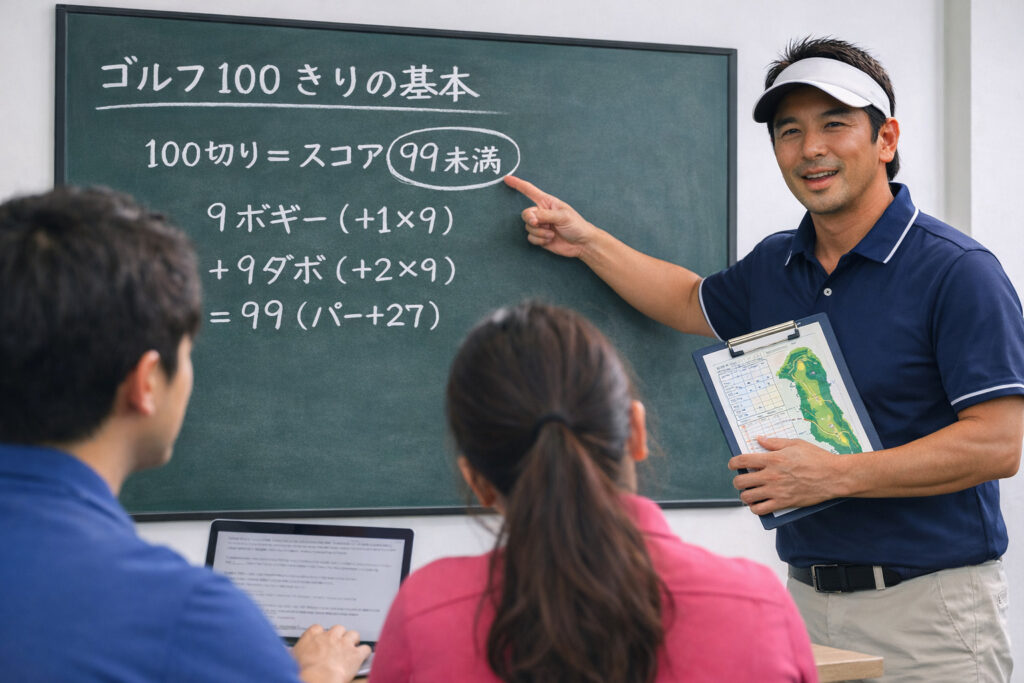 一般的に「100切り」は、18ホールのスコアが99以下のことです。パー72のコースなら、99は27オーバー。ここまでは知ってる人も多いと思うんですが、実はこの「+27」をどう捉えるかで、難易度の感じ方がガラッと変わります。