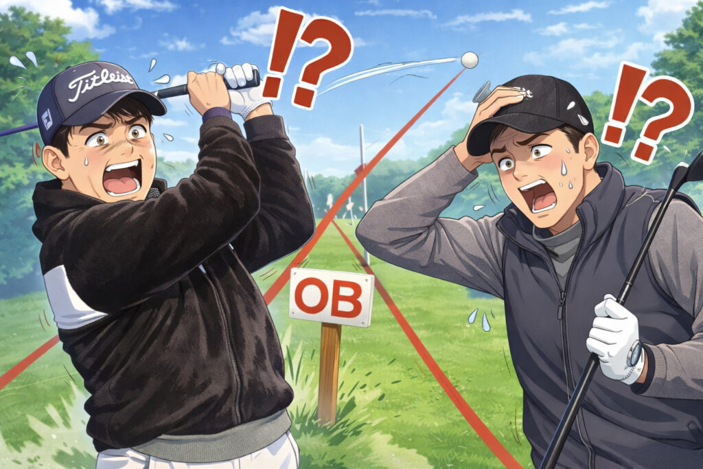 OBを減らすコツは、スイング改造より先に「狙い所」を変えることが多いです。ギリギリを狙うと、ちょいミスで即OB。センター狙いなら、同じ曲がりでも助かる確率が上がります。