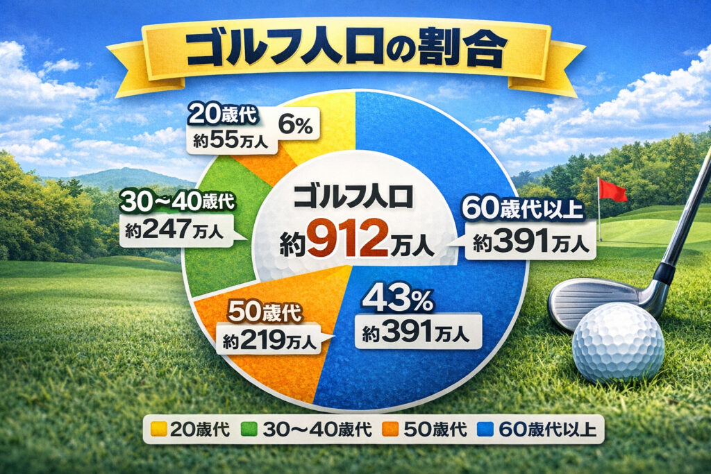 ゴルフ100切り人口を考えるとき、いちばん最初に固めたいのが「分母」です。つまり、ゴルフ人口がどれくらいなのか。ここが曖昧だと、何割だの何人だのって話が全部ふわっとしちゃうんですよね。