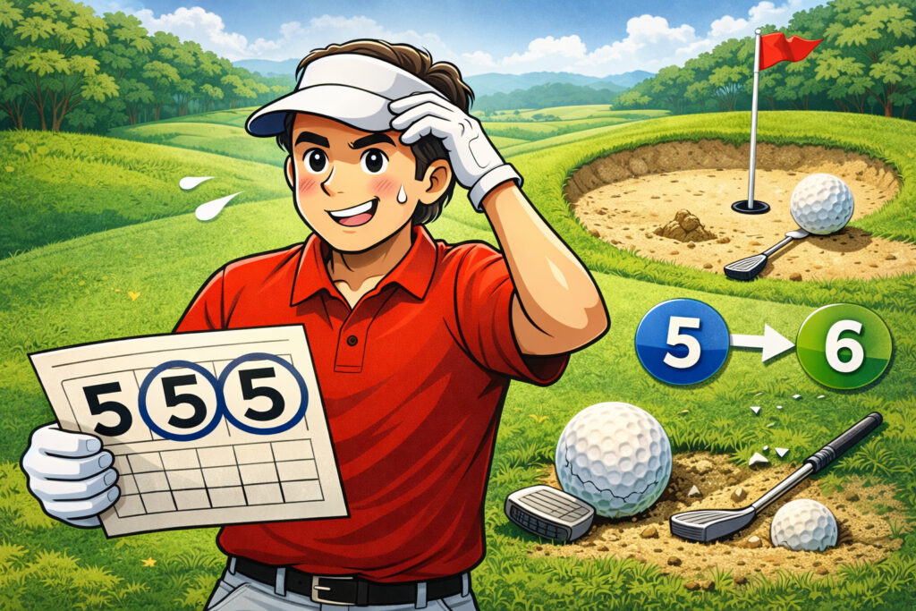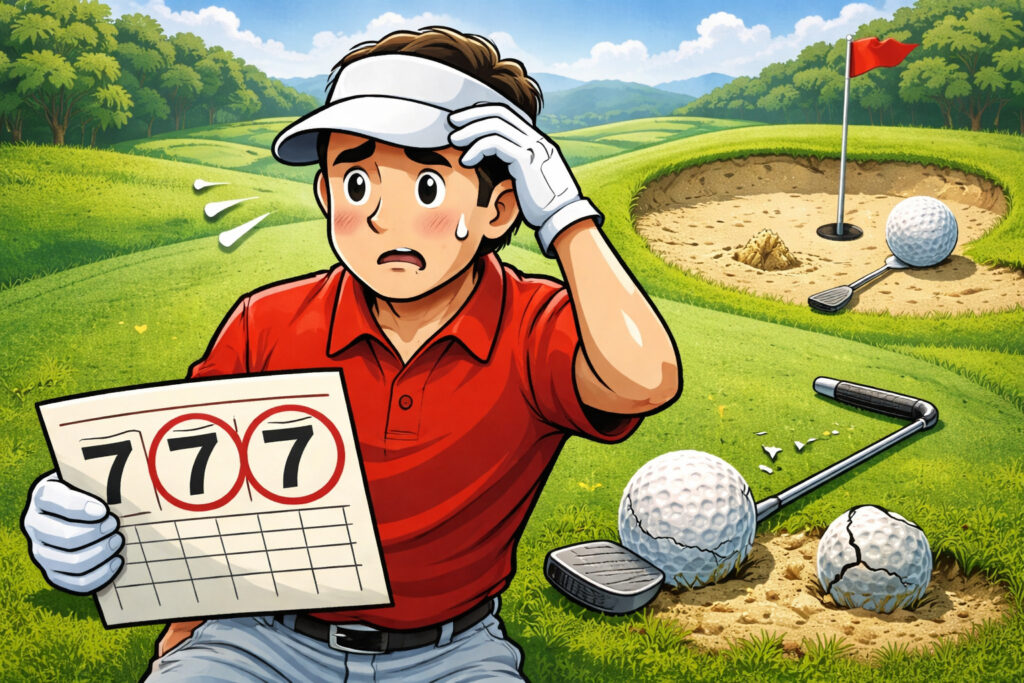 そのうえで、実戦では「OB・紛失球を減らす」「3パットを止める」「刻むマネジメントで+4以上を消す」。この3つを優先すると、スコアがいきなり安定してきます。特に、あなたが今「トリプルばかりで嫌になる…」って感じているなら、勝負どころはナイスショットじゃなくてやらかした後の1打です。そこで欲張らずに安全地帯へ戻せれば、トリプルで止まります。